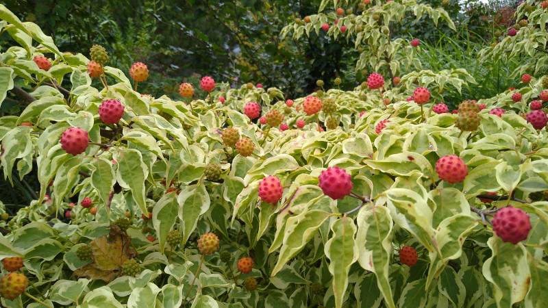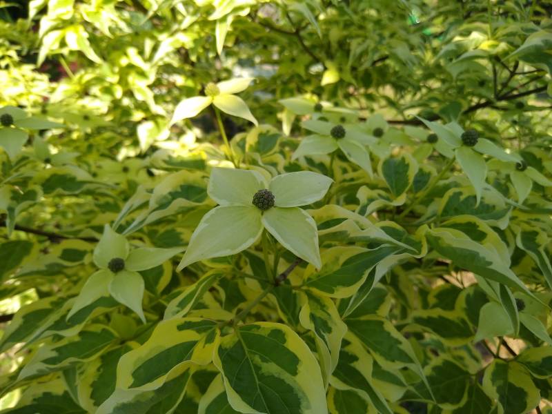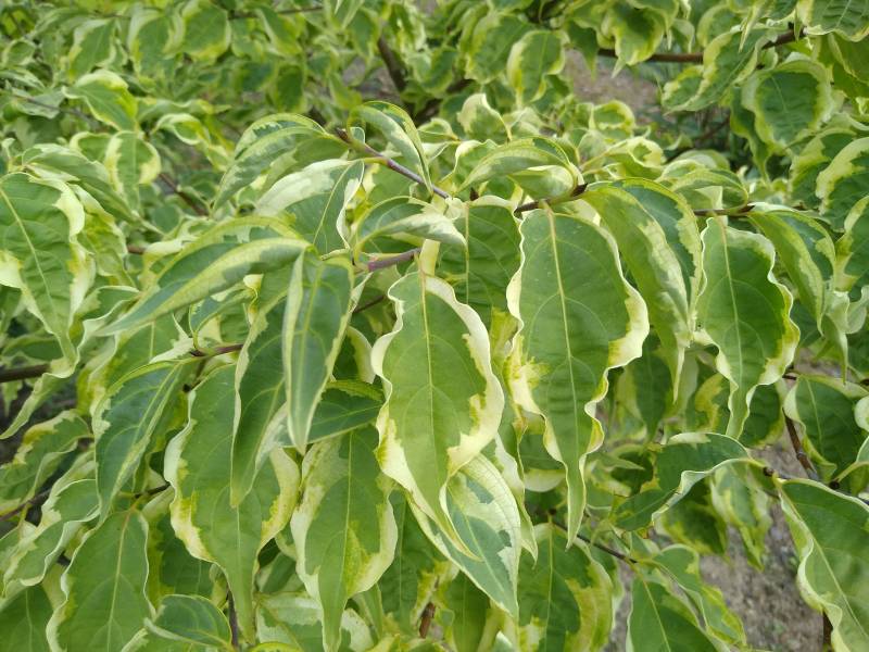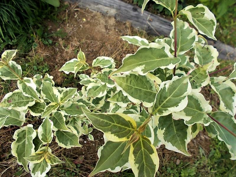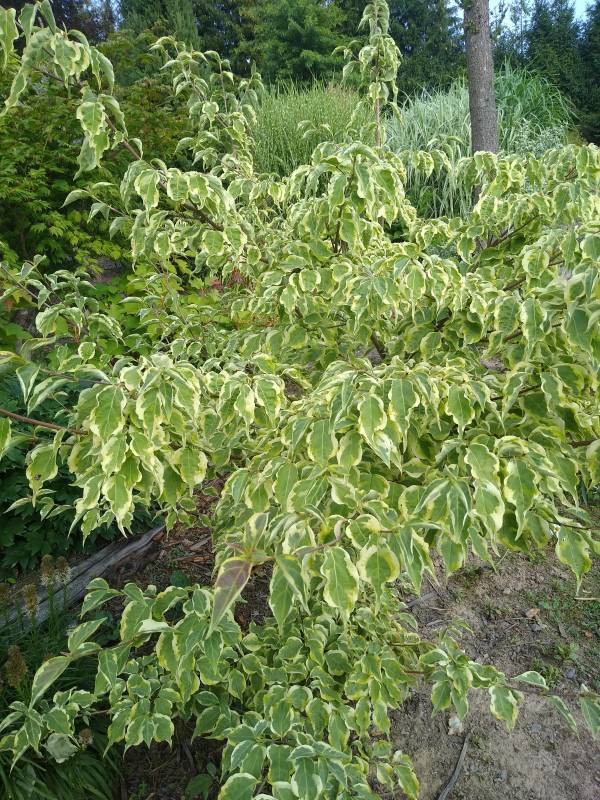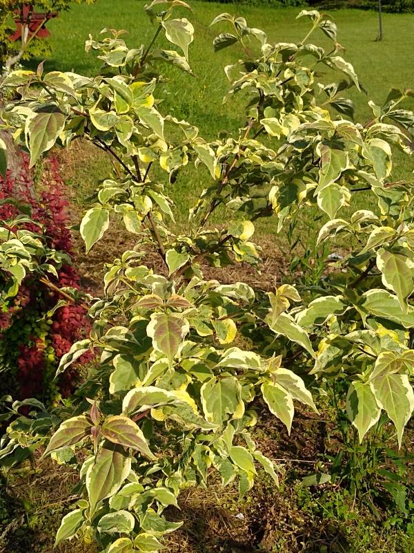 Średniej wielkości krzew lub małe drzewko, dorastające do 3 m. wysokości. Liście: zielone z nieregularną kremowo-białą obwódką, spiczaste, jesienią przebarwiają się na różowo-purpurowo. Podsadki: wydłużone, białe. Stanowisko: słoneczne, półcieniste, zaciszne, ciepłe. Gleba: żyzna, umiarkowanie wilgotna, przepuszczalna, o odczynie kwaśnym do obojętnego.