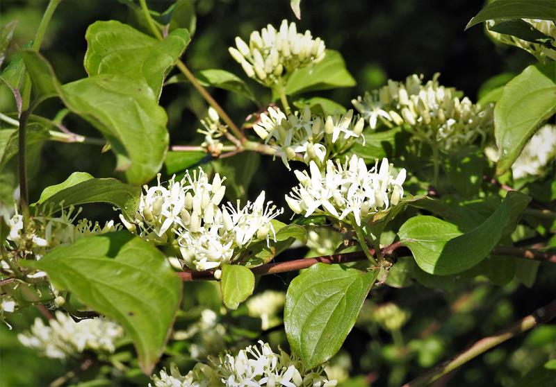 Gatunek jest wysokim krzewem dorastającym nawet do 4 m. Pokrój: wyprostowany, szeroki, zaokraglony. Kora: szara, gładka, w późniejszym wieku z płytkimi bruzdami, od strony słonecznej purpurowa. Liście: eliptyczne, zaostrzone, obustronnie zielone, dł. od 5 do 8 cm., jesienią przebarwiają się w odcieniach czerwieni. Kwiaty: białe, drobne, 4-płatkowe, skupione w płaskich podbaldachach, pachnące, ukazują się na przełomie maja i czerwca. Owoce: okrągłe jagody, dojrzałe w kolorze niebiesko-czarnym, utrzymują się na roślinie do zimy. Stanowisko: słoneczne, półcieniste. Gleba: wilgotna, ale poradzi sobie również na suchym podłożu.