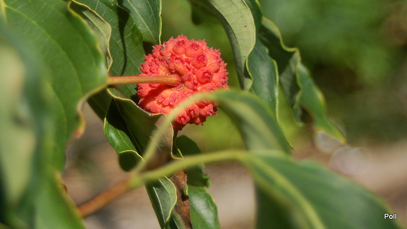 Owoce: kuliste, czerwone, kształtem przypominają maliny, jadalne, ale mdłe w smaku.