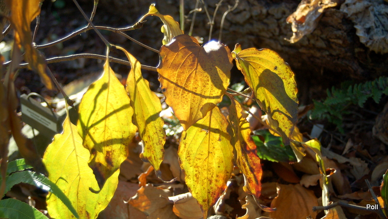 Liście: szerokoeliptyczne, ciemnozielone, jesienią przebarwiają się w odcieniach czerwieni, brązu, a nawet fioletu.