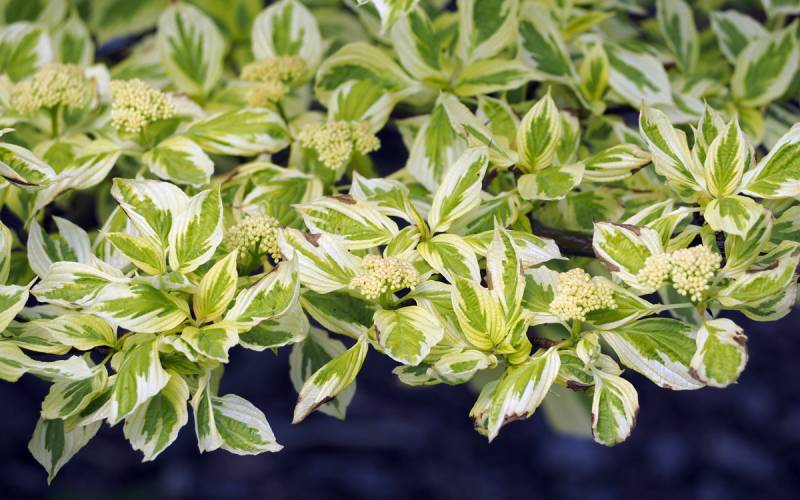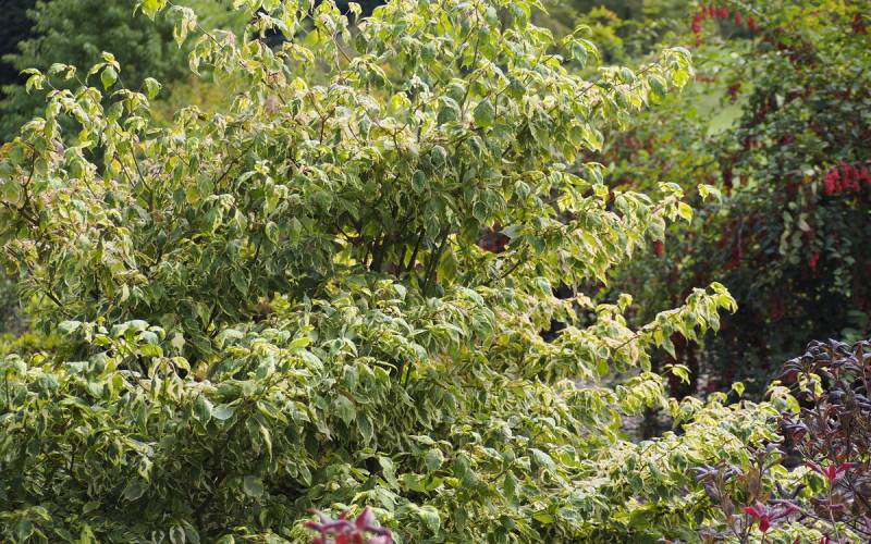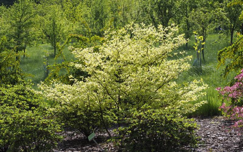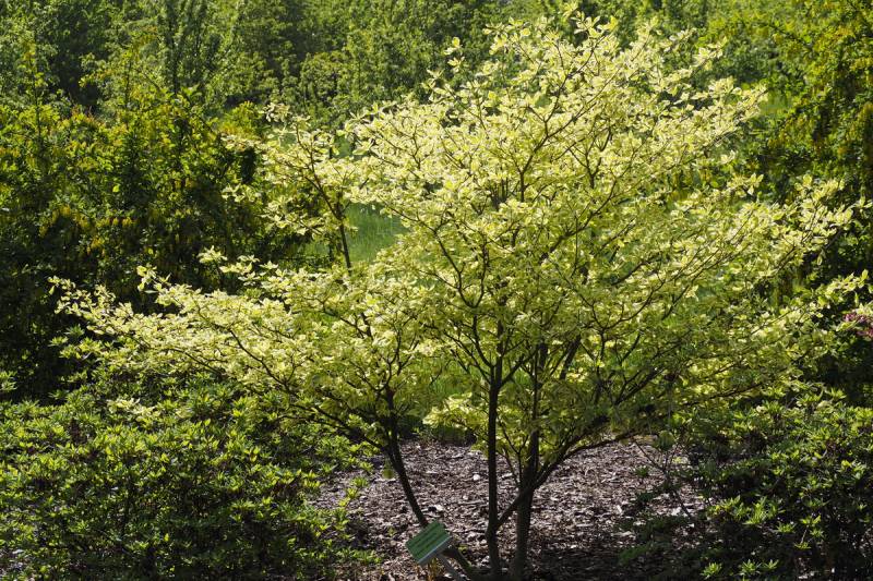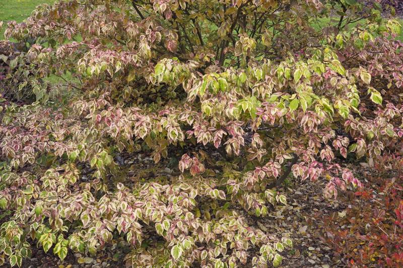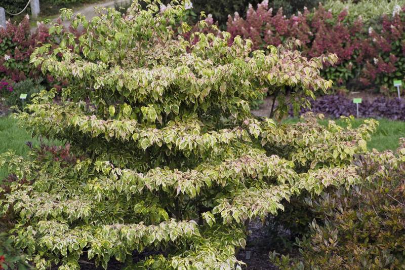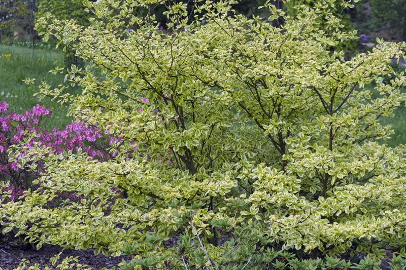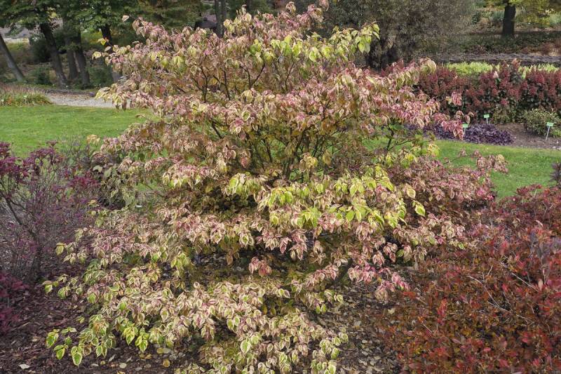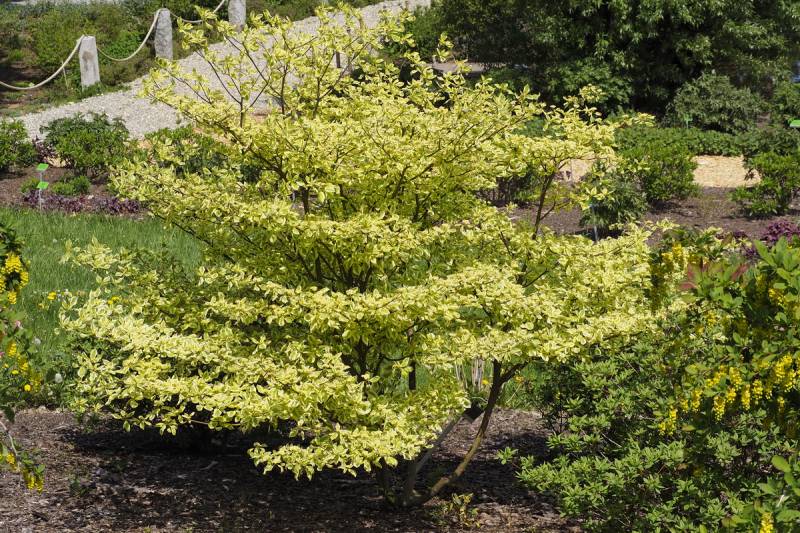 Okazały krzew lub niskie drzewko dorastające do ok. 2-3 m wysokości i podobnej szerokości, pokrój wzniesiony z wyraźnie zarysowanymi piętrami Gałęzie: ułożone poziomo Liście: zielone z kremowo-żółtym marginesem, młode lekko zaróżowione, jesienią przebarwiają się w odcieniach czerwieni i różu Kwiaty: białe, drobne, pachnące, zebrane w sterczące baldachogrona, ukazują się w czerwcu Owoce: kuliste, granatowoczarne Stanowisko: słoneczne, półcieniste, zaciszne Gleba: żyzna, wilgotna, przepuszczalna Mrozoodporność: podawana do -25°C