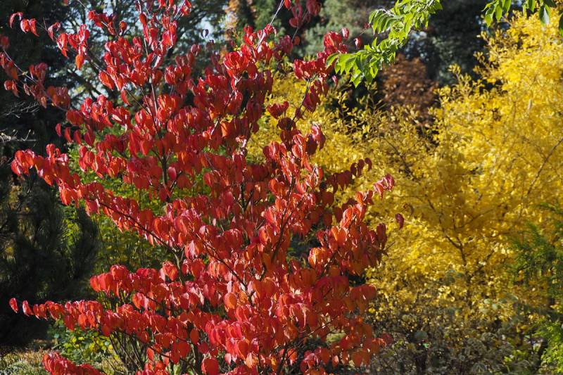 jesienią przebarwiają się intensywnie w odcieniach pomarańczowo-różowych