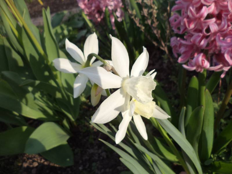 Cebulica dzwonkowata i białe tulipany