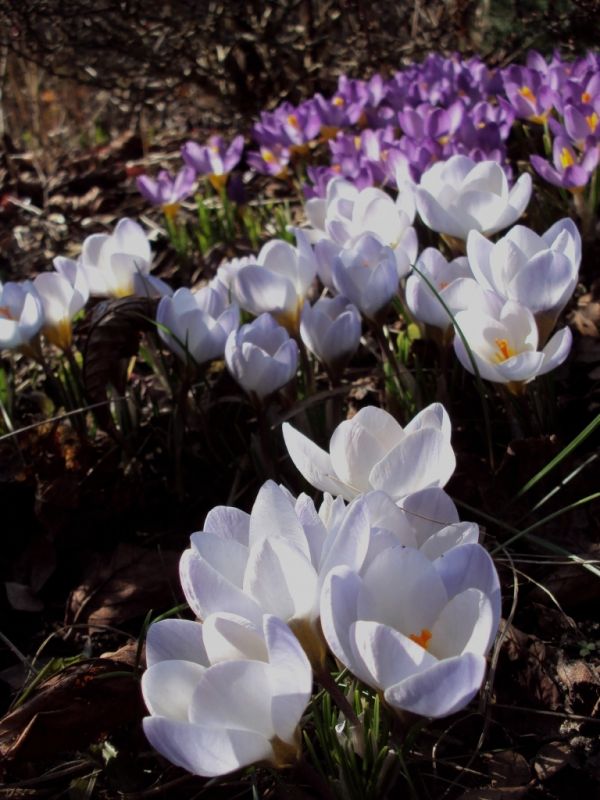 Zacznę od tego że cień najczęściej dają w ogrodzie drzewa a drzewa mają rożne systemy korzeniowe. Ha, inne rośliny sadzi się w pobliżu brzóz a inne tam gdzie rosną sosny i jodły. Przy drzewach o palowym systemie korzeniowym możemy posadzić rośliny, które potrzebują do prawidłowego rozwoju więcej wilgoci a przy tych o płytkim a rozległym systemie korzeniowym takie rośliny, które są w stanie wytrzymać niedobór wilgoci. Znaczy poznajmy dokładnie jaki jest nasz zacieniacz i dopasujmy do niego nasadzenia. Pamiętajmy że opadające igły zakwaszają glebę, że liście dębu bardzo wolno się rozkładają, że jesionki i klony sieją się jak szalone. Im bliżej pnia drzewa tym bardziej sucho, miejmy to na uwadze sadząc rośliny. Rabata w miejscu cienistym pod drzewem może być zarówno rabatą w stylu klasycznym jak też nasadzeniem o naturalistycznym charakterze (nie wiem dlaczego tak jest ale przyuważyłam - miłośnicy cieniolubów preferują styl swobodny, zazwyczaj cieniste nasadzenia są takie bliżej natury). Dobra , lecimy z koksem - cienista rabata wiosenną porą, drzewa nie rozwinęły jeszcze liści i cień jest w dalekich planach. To dobry czas dla wczesnowiosennych roślin cebulowych. Kiedy liście się rozwiną one już dawno będą wspomnieniem.