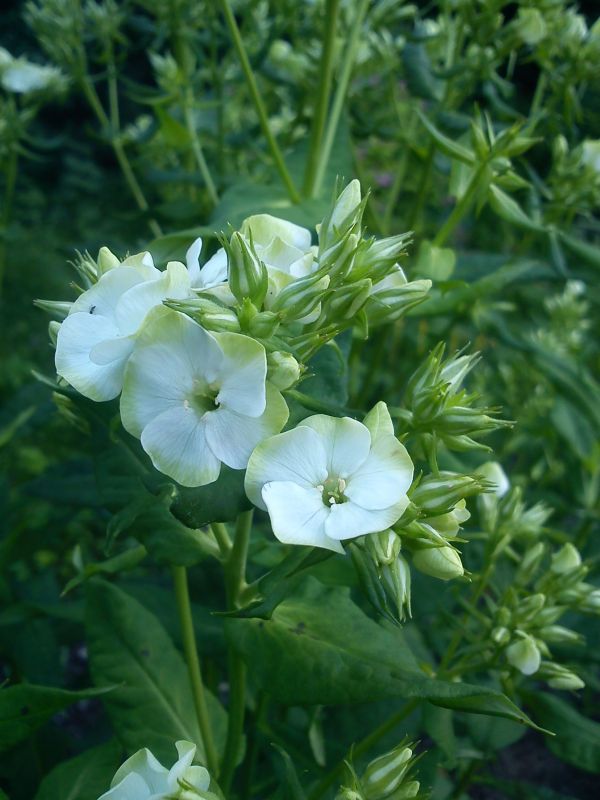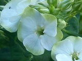 Kwiaty białe z zielono-seledynowym brzegiem, pięknie pachnące. Kwitnie od lipca do września.