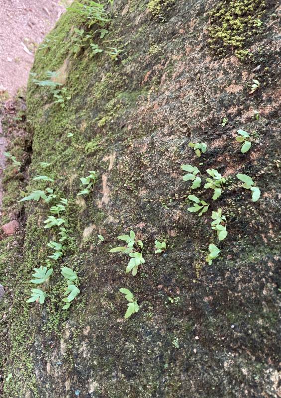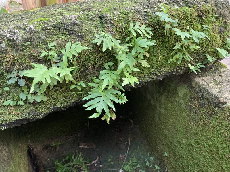 Ściany wewnątrz studni przy hinduistycznej świątyni w Katmandu porośnięte były paprociami przypominającymi Asplenium venustum.