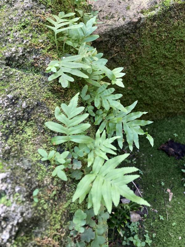 Polypodium cambricum - tak ta paprotka została zidentyfikowana przez Seek by iNaturalist - na starożytnym artefakcie w Muzeum Archeologicznym w Palermo na Sycylii. Artefakt staonna wolnym powietrzu.