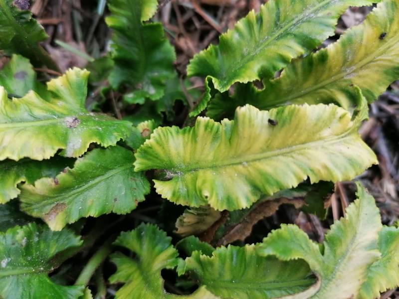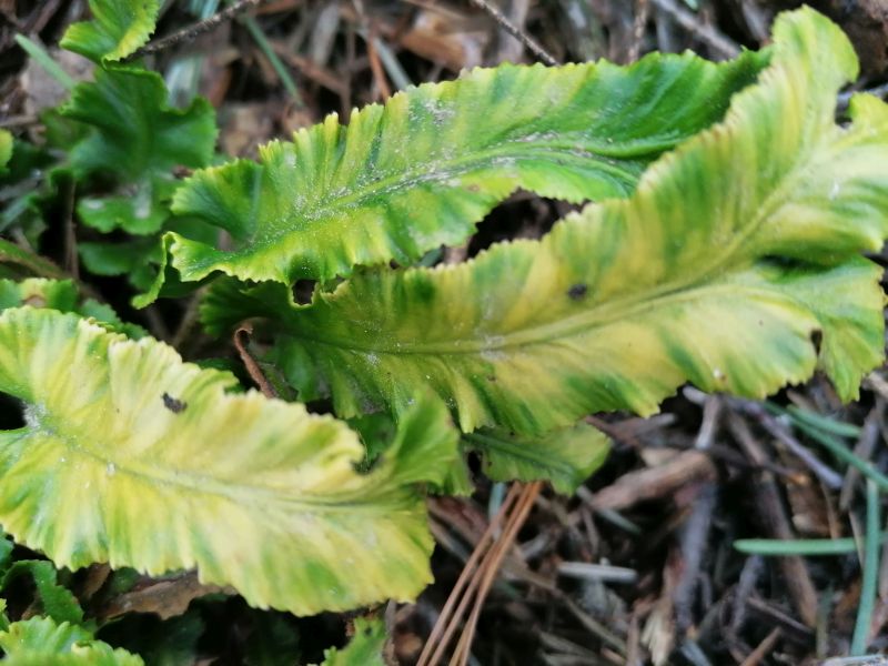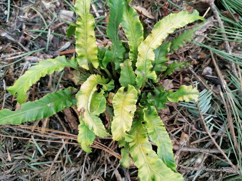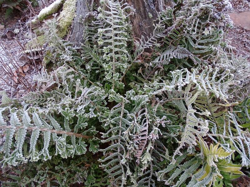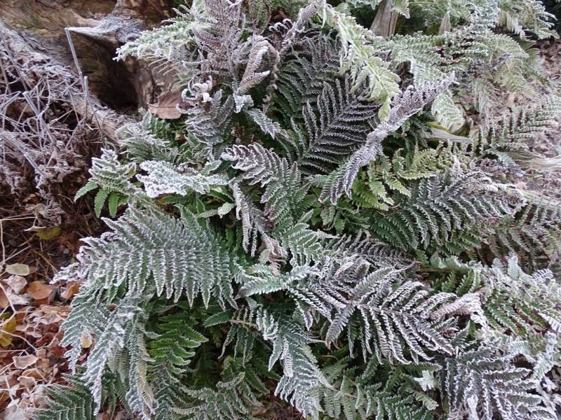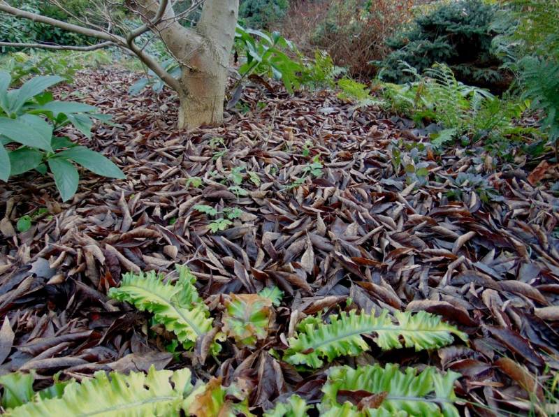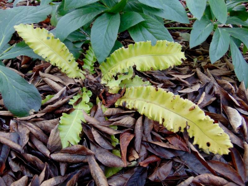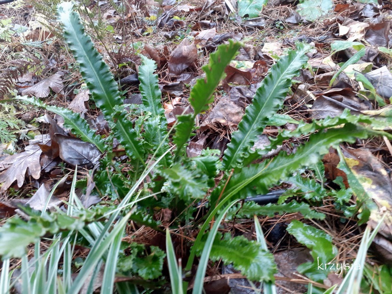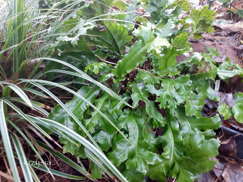 Ubiegłej jesieni o tej porze liście języczników /jak i innych paproci/ były już bardzo zniszczone przez silne, ostre wiatry. W tym roku nieco wcześniej je okryłam i to zapobiegło uszkodzeniom.
