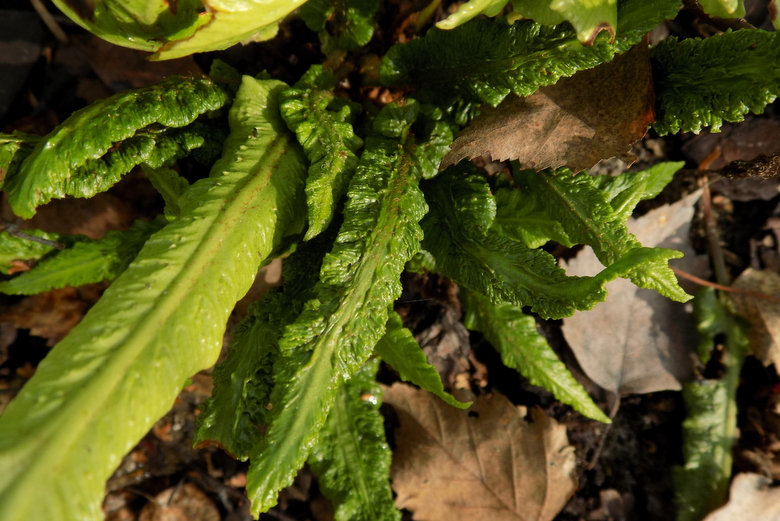 Siewka Asplenium scolopendrium, którą 3 lata temu podarował mi Tomasz. Na początku roślina miała waskie , pomarszczone, jakby ulane z plastiku frondy