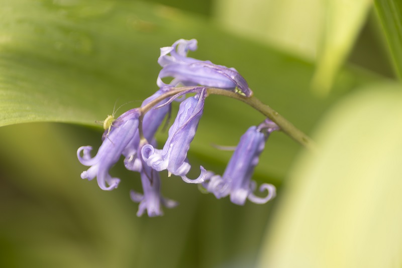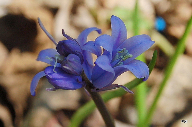 Kwiaty: do 20 słodko pachnących kwiatów (szczerze mówiąc nigdy nie wąchałam) na łodydze kwiatowej. Kwiaty są w kształcie dzwonu i mogą być niebieskie, białe lub rzadko różowe. Każdy kwiat ma 6 płatków z zakrzywionymi (wywróconymi) końcówkami. Pylniki mają biało-kremowy pyłek.
