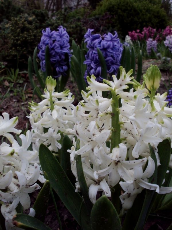 Niegdyś, każdej zimy pędziłam sobie sama hiacynty w domu a potem wysadzałam je do ogrodu. Jeden z nich ładnie się namnożył przez kilka lat w moim przydomowym ogrodzie, ale stracił 'pałkowaty' kształt kwiatostanu. Poszczególne kwiaty są luźno rozrzucone.