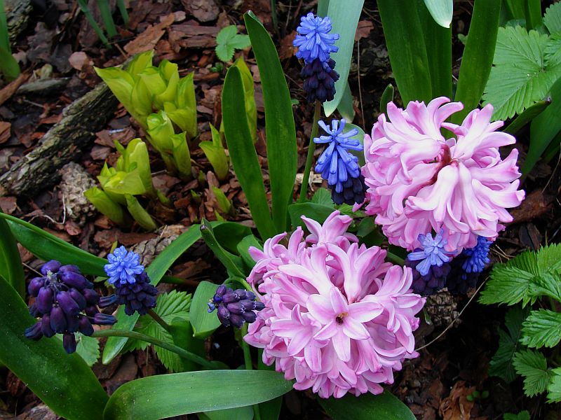 Przygodę z Hiacyntami zacząłem dopiero zeszłej jesieni, postawiłem raczej na zróżnicowanie kolorystyczne, cebule sadziłem pojedynczo lub parami. 'Fondant' stanowi jeden z wielu elementów kolorystycznej mozaiki na rabacie cebulowej.