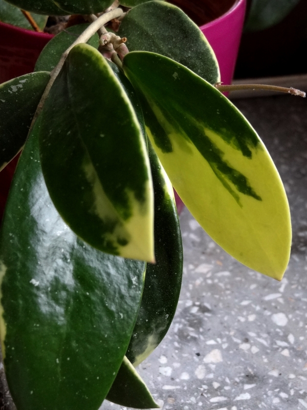 Hoya latifolia przestawiona na północne okno nie ma tak pięknie wybarwionego brzegu, ale nowe liście to giganty :grin: