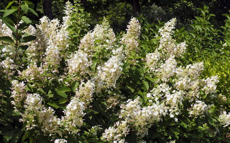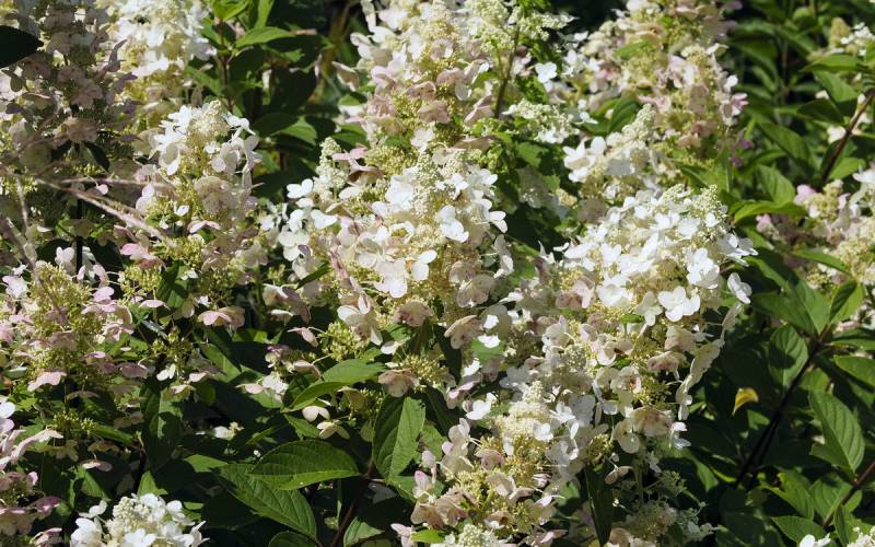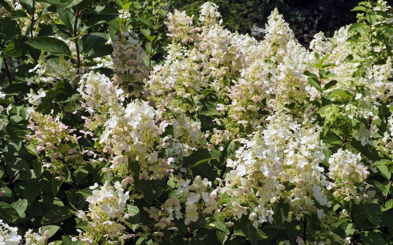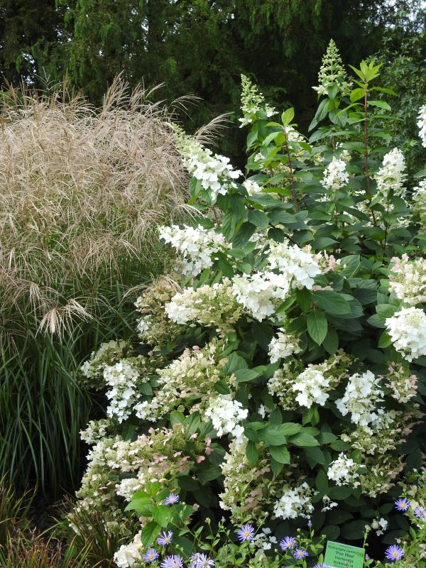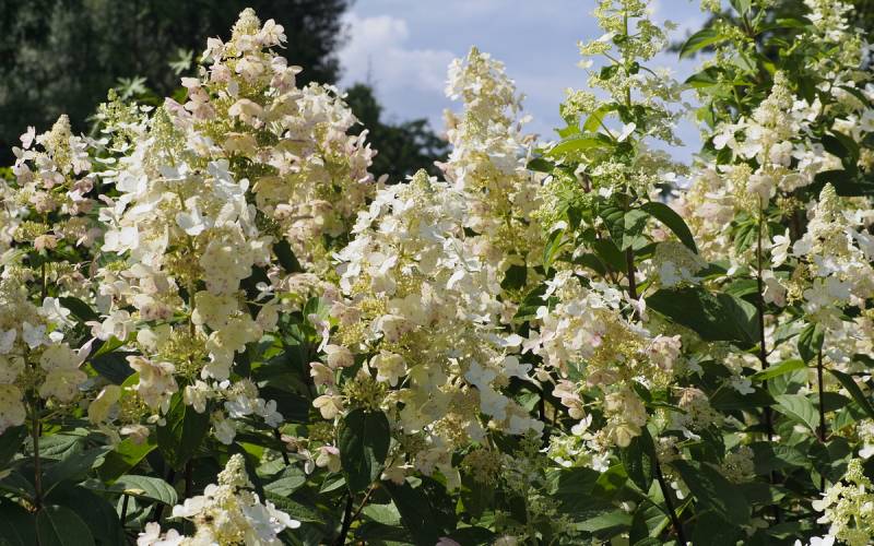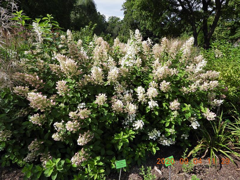 Wielkość: osiąga około 150 cm wysokości, pokrój krzewu zwarty, pędy liczne, sztywne, lekko odchylające się na boki Kwiaty: początkowo czysto białe, dość szybko zmieniają barwę na delikatnie różową; kwiatostany długości 15-20 cm półpełne - składają się zarówno z kwiatów płonnych jak i płodnych Stanowisko: słoneczne lub pół-cieniste, gleba żyzna, wilgotna - odmiana tolerancyjna względem pH: od lekko zasadowego po lekko kwaśne Cięcie: przyciąć wiosną co najmniej o 1/3; Mrozoodporność: bardzo dobra