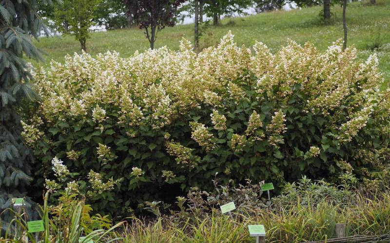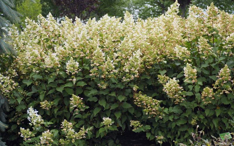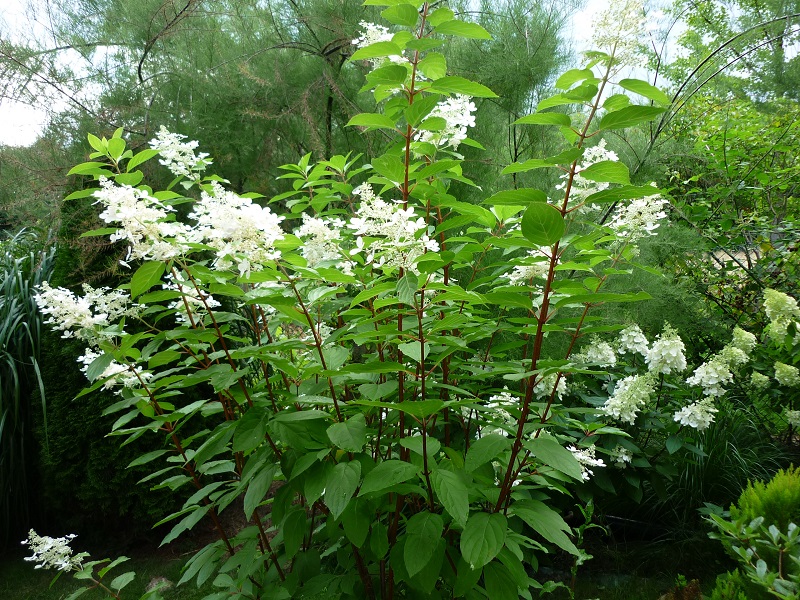 Ciekawa odmiana dorastająca do ponad 2 m. wysokości. Pokrój: wyprostowany, gęsty. Kwiatostany: bardzo duże, stożkowe, składające się zarówno z kwiatów płodnych, jak i płonnych ( czteropłatkowych, ząbkowanych). W początkowej fazie kwitnienia są koloru biało-kremowego, a zbiegiem czasu nabierają różowych barw. Liście: szerokie, ząbkowane.