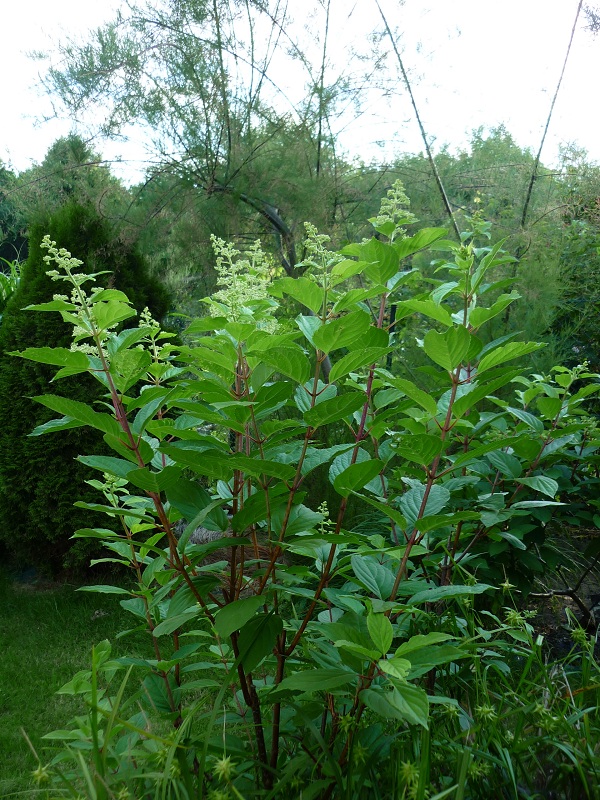 Wigorny, mocno rosnący, wysoki krzew. Teraz ma ponad dwa metry wysokości. Nadaje się na tyły rabat, ale przy zachowaniu sporej ilości miejsca, bo na szerokość też się rozrasta. I choć pędy pną się prosto w górę, to jednak objętość ma sporą.