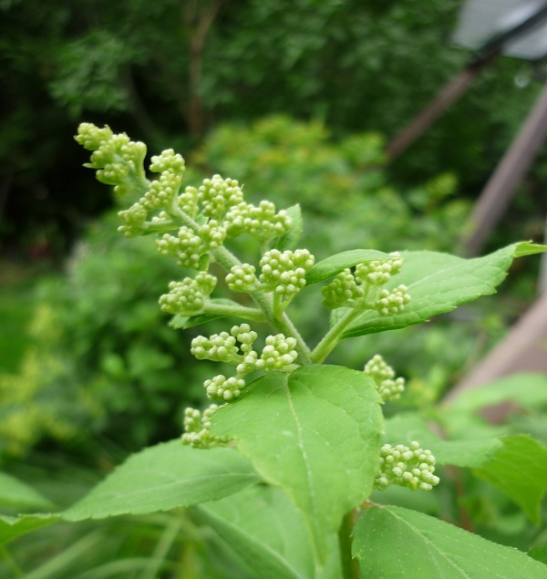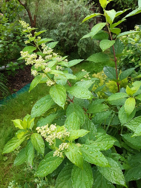 Najprawdopodobnej z powodu słabego cięcia, 'Pink Lady' wytworzyła mnóstwo kwiatostanów. Są one mniejsze i bardziej ażurowe niż w ubiegłym roku, dużą ilością kwiatów płodnych. Nadają one, ogólnie całej roślinie, limonkowo-zieloną kolorystykę