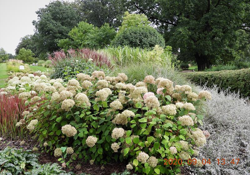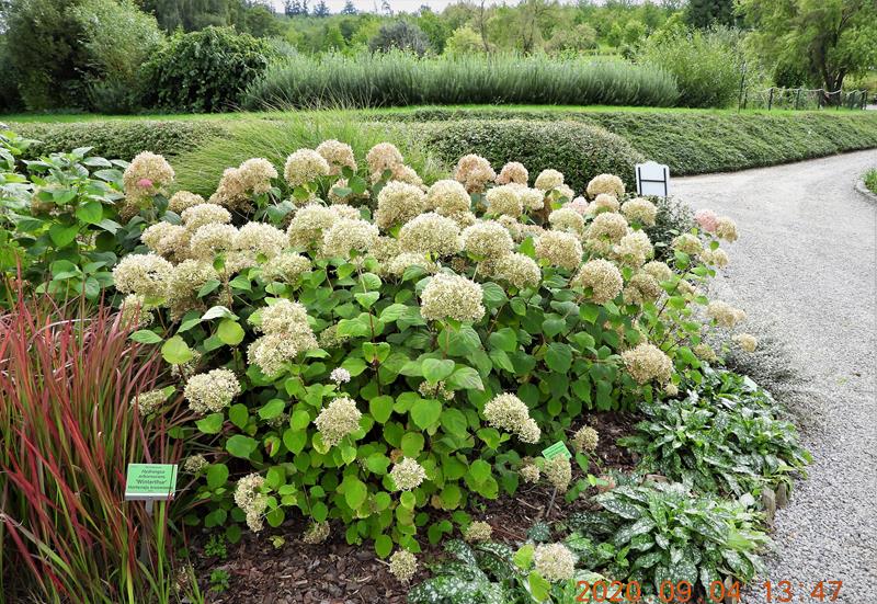 Roślina wolno przyrastająca. Po 10 latach uprawy podobno ma osiągnąć ok. 1,25 m. wysokości. Pokrój: szeroki, wyprostowany. Kwiatostany: kuliste, w białym kolorze, pojawiają się w lipcu-sierpniu.