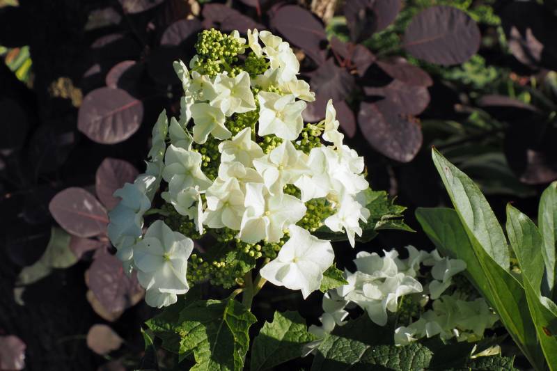 Kwiatostany: na początku kwitnienia są limonkowe, by później stać się kolejno białe i różowe