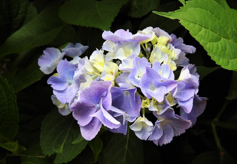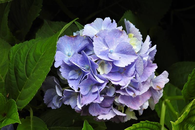 Wysokość: po wielu latach w sprzyjających warunkach może dorosnąć do 1,5 m wysokości. Pokrój: krzaczasty, wzniesiony. Liście: jajowate, lekko ząbkowane w ciemnozielonym kolorze. Kwiatostany: półkuliste, fioletowe lub niebieskie w zależności od Ph gleby. Stanowisko: półcieniste do cienistego, osłonięte od mroźnych, zimowych wiatrów. Gleba: żyzna, wilgotna, lekko kwaśna.