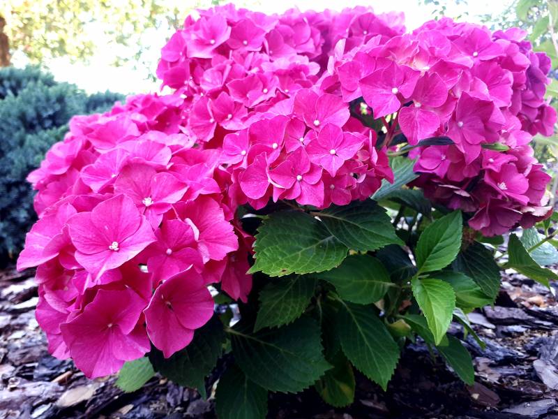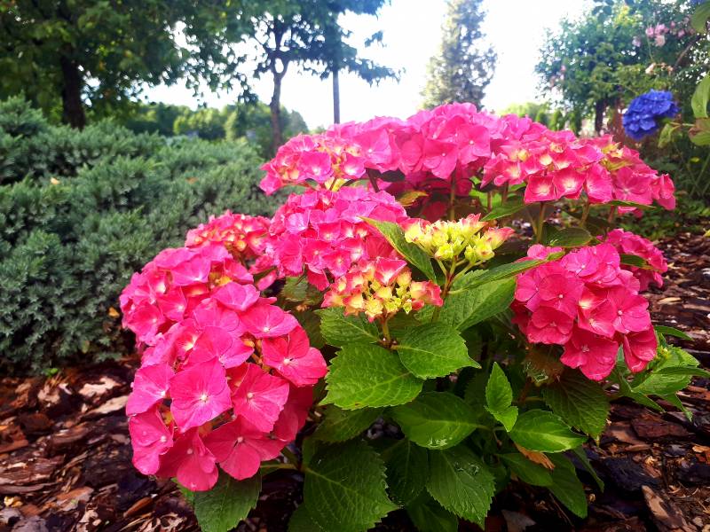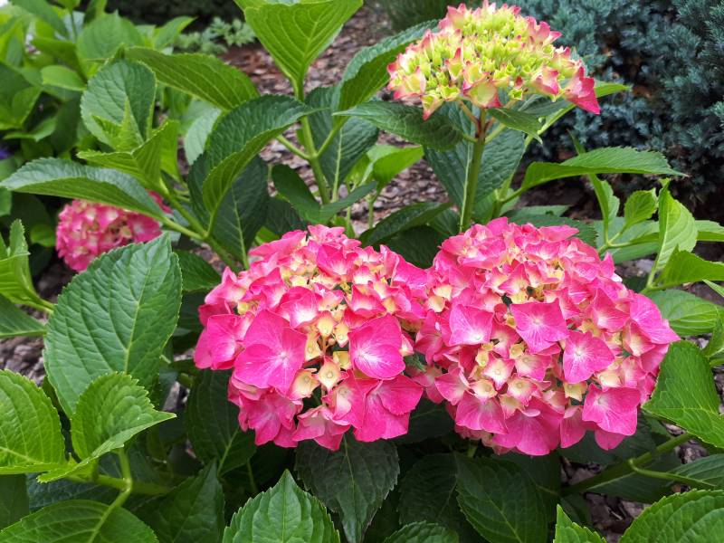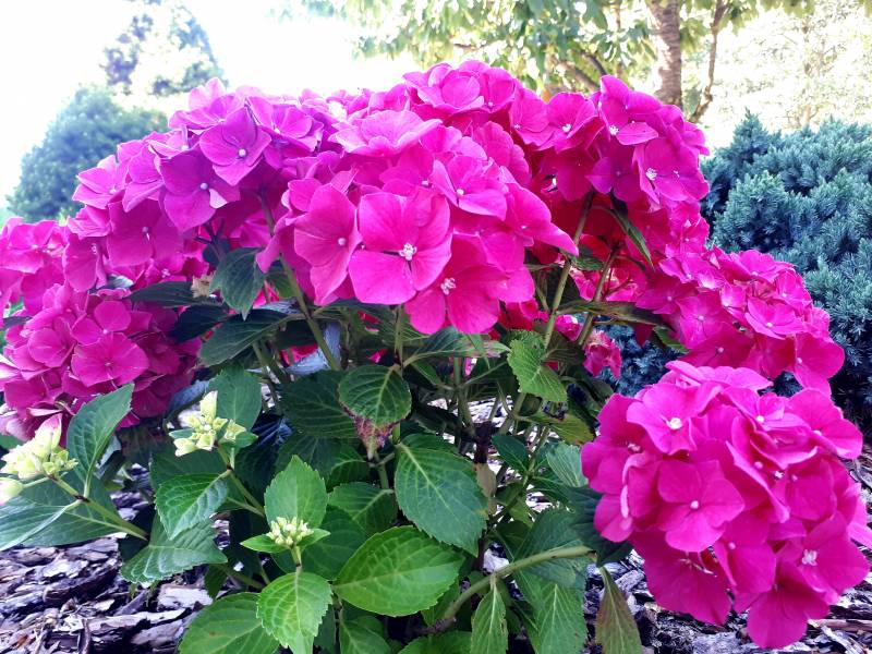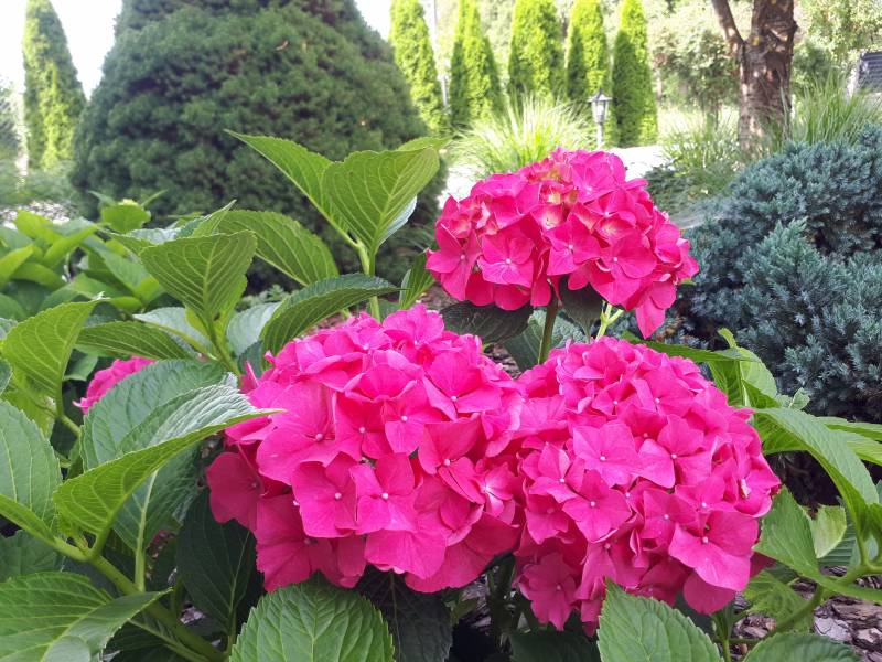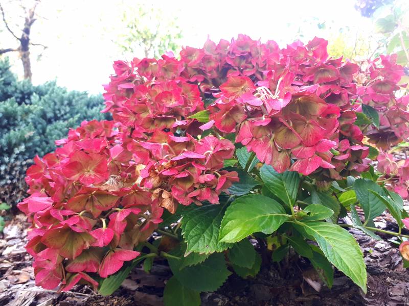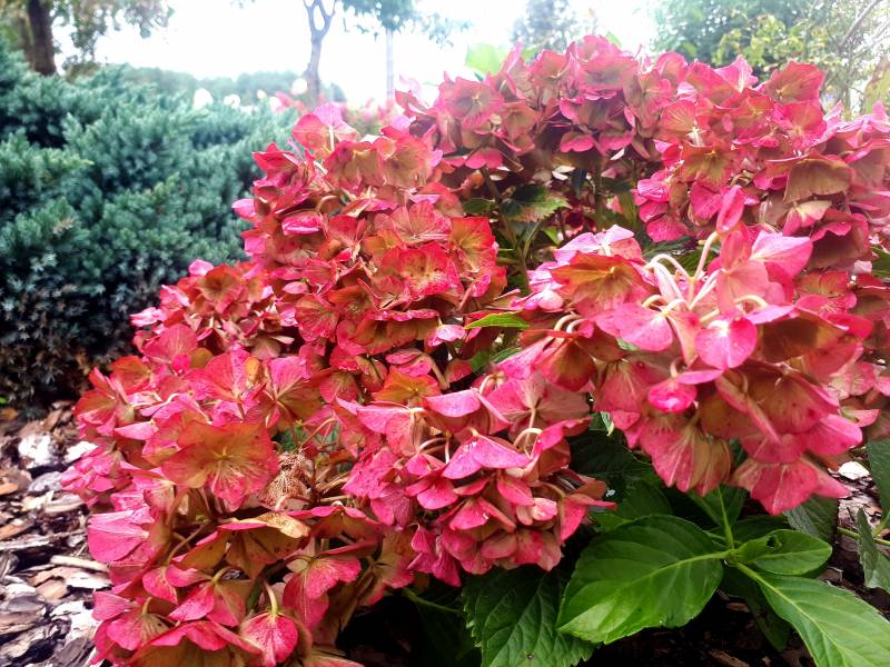 Kompaktowa odmiana, która zmieści się nawet w niewielkim ogrodzie. Pokrój: zwarty, gęsty, zaokrąglony. Kwiatostany: kuliste, duże ok. 20 cm średnicy, czerwono purpurowe, pojawiają się od czerwca do późnej jesieni. Stanowisko: słoneczne lub półcieniste. Gleba: żyzna, próchnicza, umiarkowanie wilgotna o odczynie lekko kwaśnym do obojętnego.