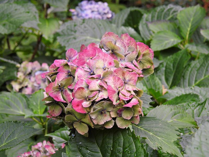 Pokrój: krzaczasty, zwarty, zaokrąglony Wielkość: dorasta do 1,2-1,5 m wysokości i podobnej szerokości Liście: owalne, ciemno zielone, ząbkowane brzegiem Kwiatostany: kuliste, duże do 20 cm średnicy, różowe lub fioletowo niebieskie w zależności od zakwaszenia podłoża, pojawiają się od czerwca na pędach zeszłorocznych Stanowisko: półcieniste lub cieniste, zaciszne Gleba: dobrze zdrenowana, wilgotna, żyzna, próchnicza, najlepiej o odczynie kwaśnym 4-5 pH