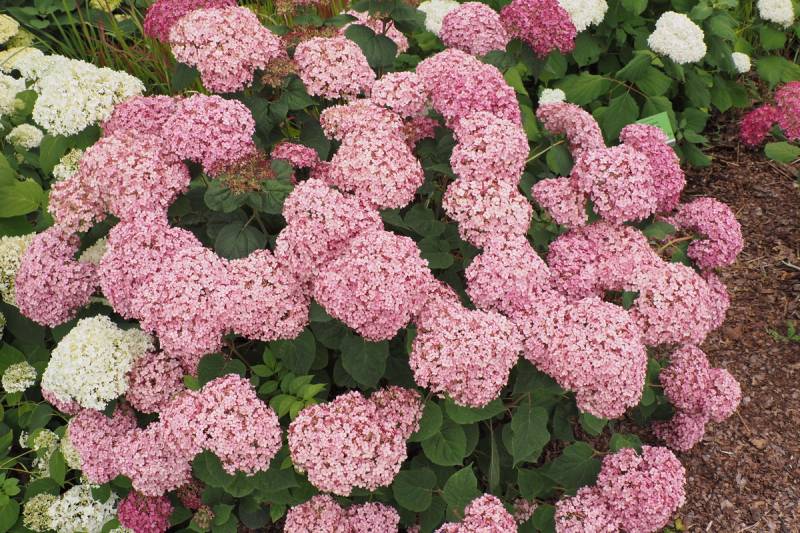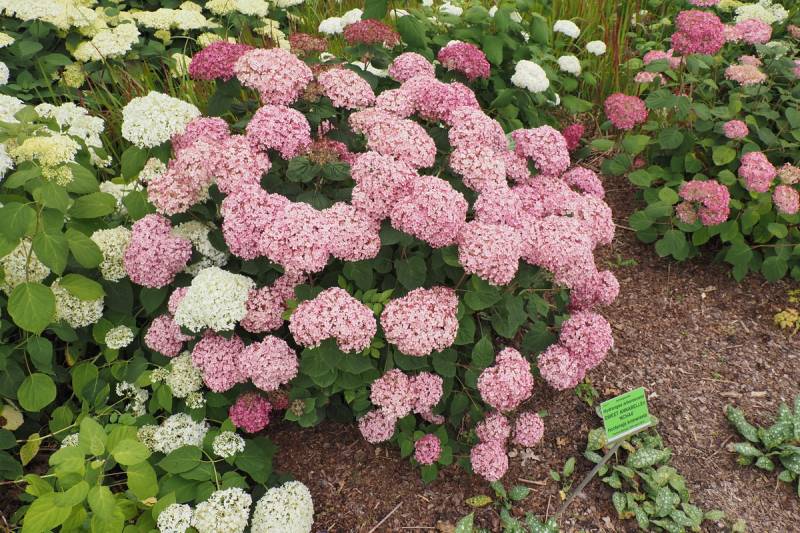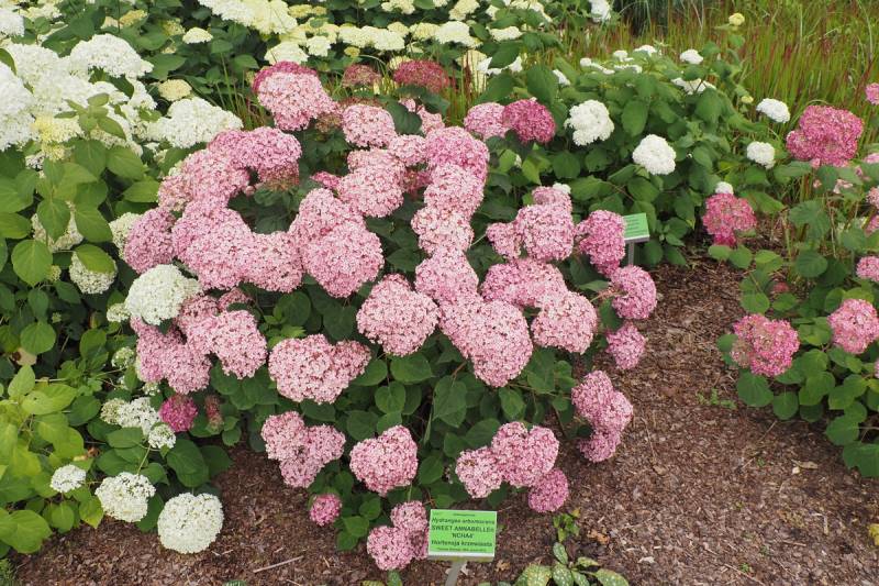Pokrój: gęsto rozgałęziony, szybko rosnący krzew dorastający do 1,2–1,4 m wysokości i podobnej średnicy, to różowa wersja 'Strong Annabelle'