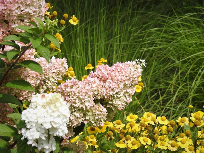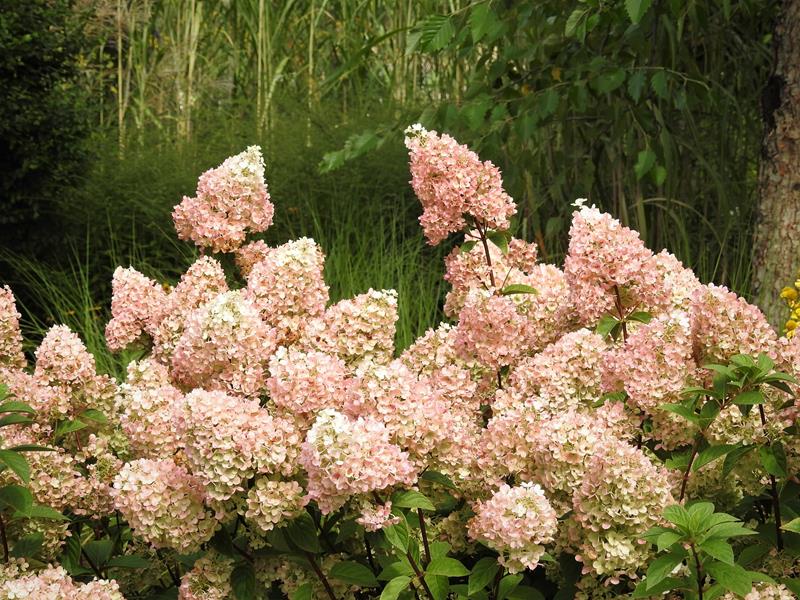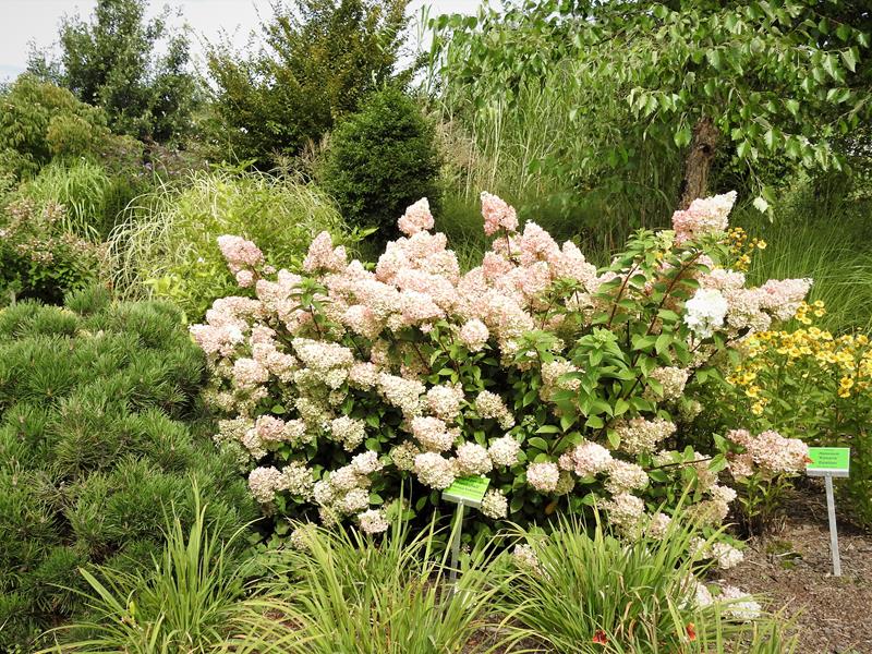 Tak prezentowala się w sierpniu zeszłego roku, na rabacie hortensjowej ('Bomshell' - 1-szy plan na środku):