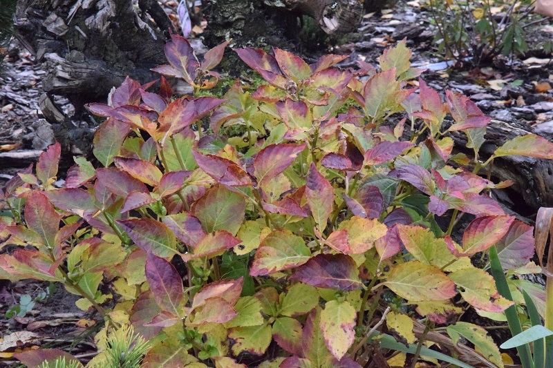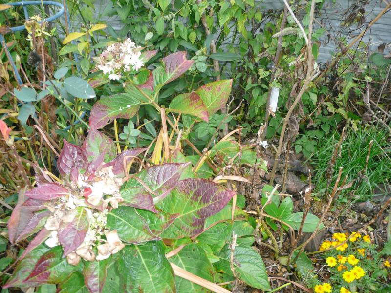 W tym roku liście hortensji Coco są jakby bardziej czerwone. Może jeszcze nie są to jej ostateczne barwy jesienne think: ?