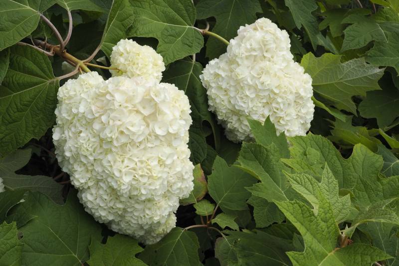 Kwiaty: bardzo atrakcyjne, pełne, białe, wiechowate osiągają do 30 cm długości, kwitnie w lipcu i sierpniu na pędach dwuletnich, w miarę przekwitania kwiaty różowieją, a później zielenieją