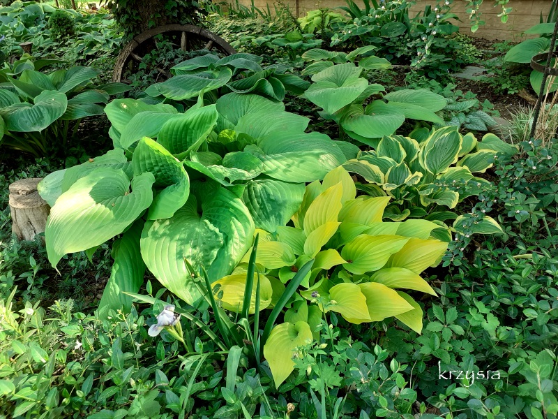 Hosta 'Sundance' na tylko lekko ocienionym stanowisku w OB w Wojsławicach.