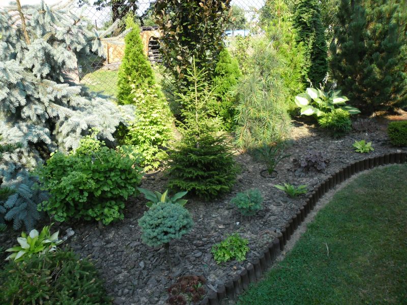 U mnie w ogrodzie hosty rosna pomiędzy iglakami i klonami palmowymi poniewaz to one zagościły w nim jako pierwsze.
