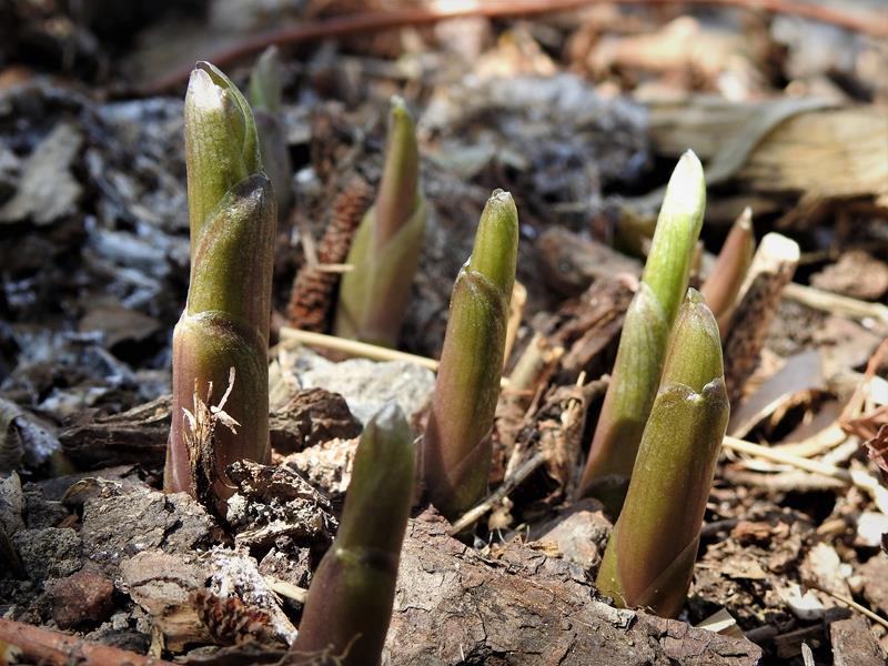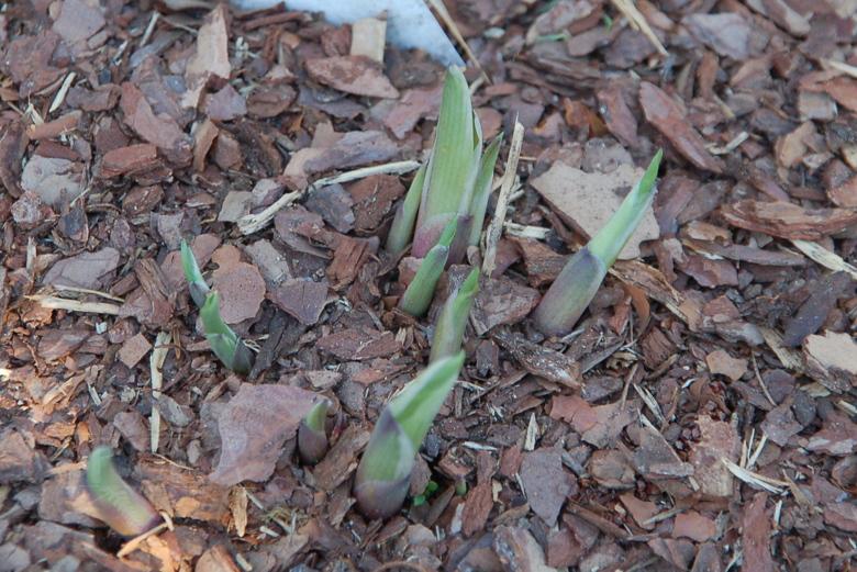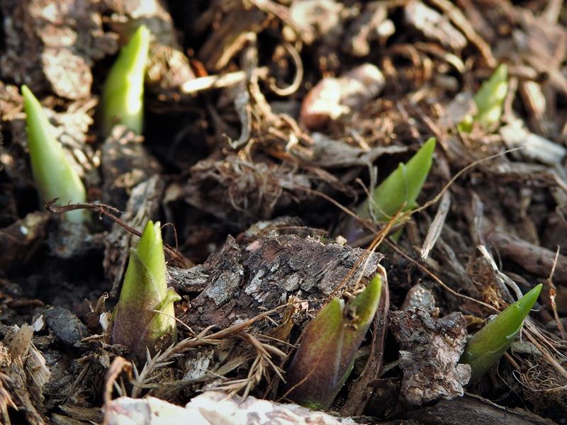 Te, które zasypałam przed wyjazdem grubo korą i którym się tak bardzo nie spieszyło, więc dopiero wystawiły czubeczki kłów, mają szansę na prawidłowy rozwój....O ile matka Natura znów nie wróci z przymrozkami. Do Zimnej Zośki jeszcze miesiąc!