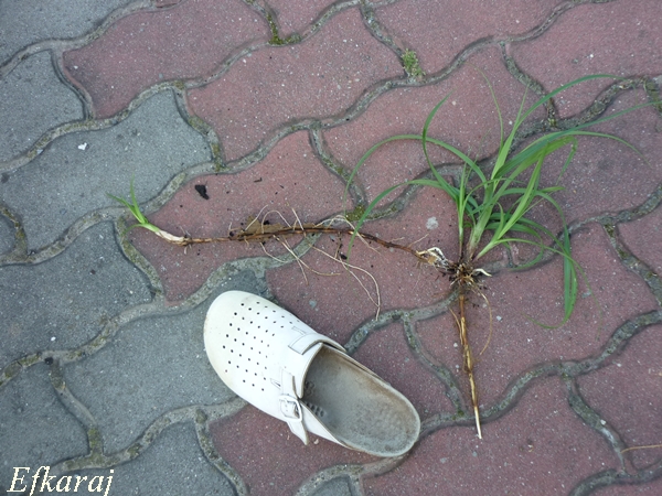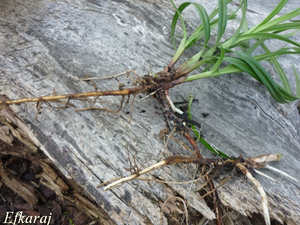 Takimi rozłogami się rozrasta, powiedziałabym, w tempie ekspresowym. jedno kłącze wyrwałam nawet z tego leżącego pniaka. Całe źdźbło przebiło się przez pieniek.