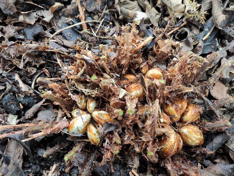 Polystichum setiferum 'Lineare' ładnie wystartował licznymi pastorałami.
