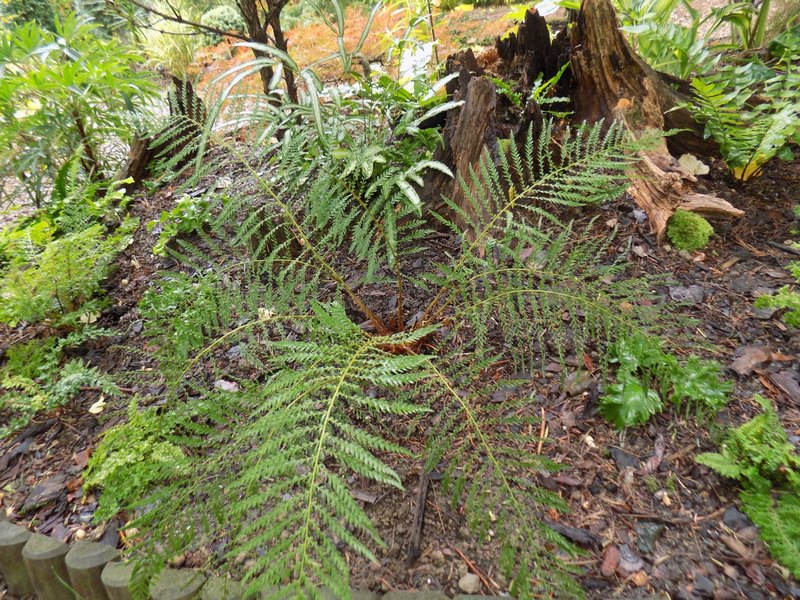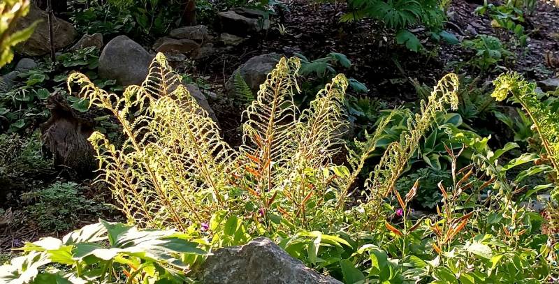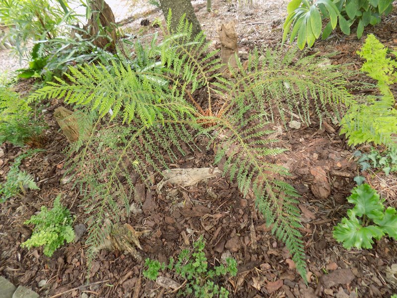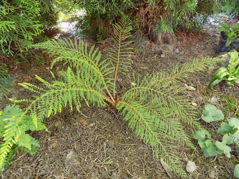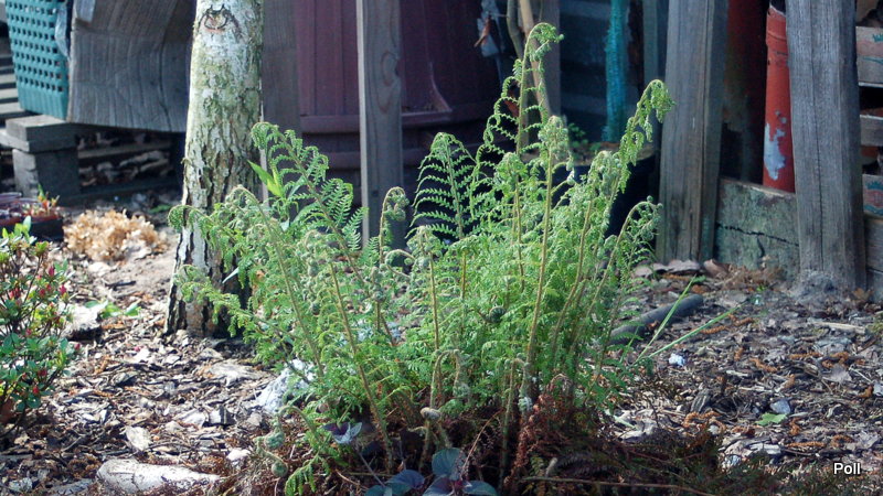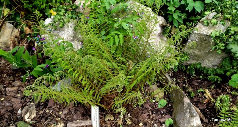 Jak pisałam kiedyś, nie darzę Polystichum setiferum 'Lineare' wielką miłością, bo nie mogę się w nim doszukać tej regularności, symetrii, czyli tego piękna, które widzę w innych paprotnikach. Niemniej cieszę się, że dobrze zniósł przeprowadzkę ze starego stanowiska na stoku paprociowym na nowe, obszerniejsze miejsce.