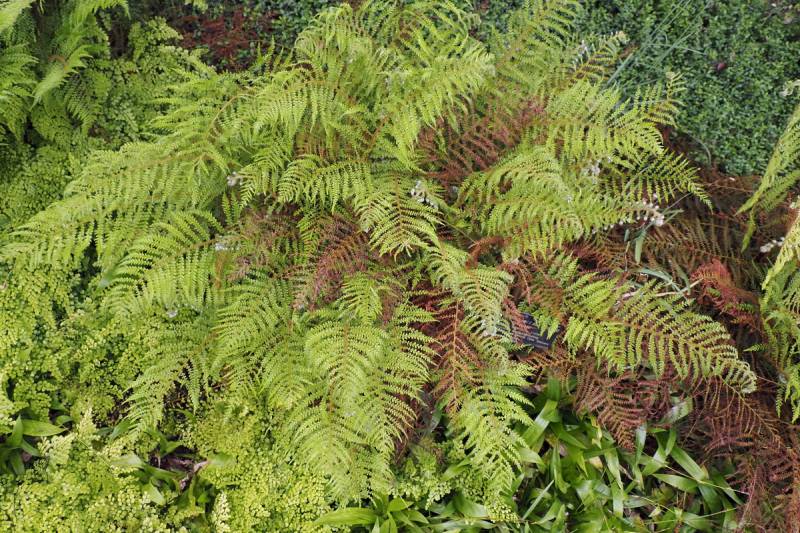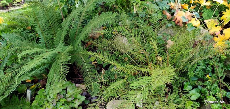 Polystichum setiferum 'Lineare', z lewej strony 'Herrenhausen'...początek października