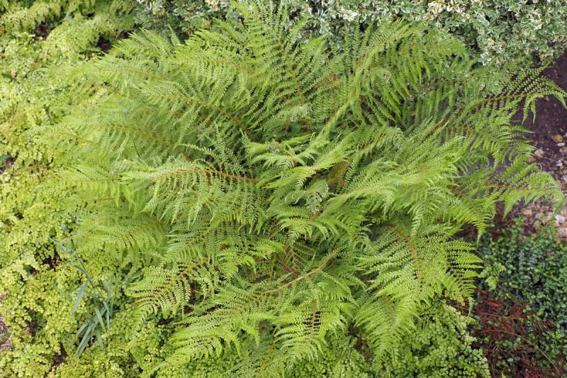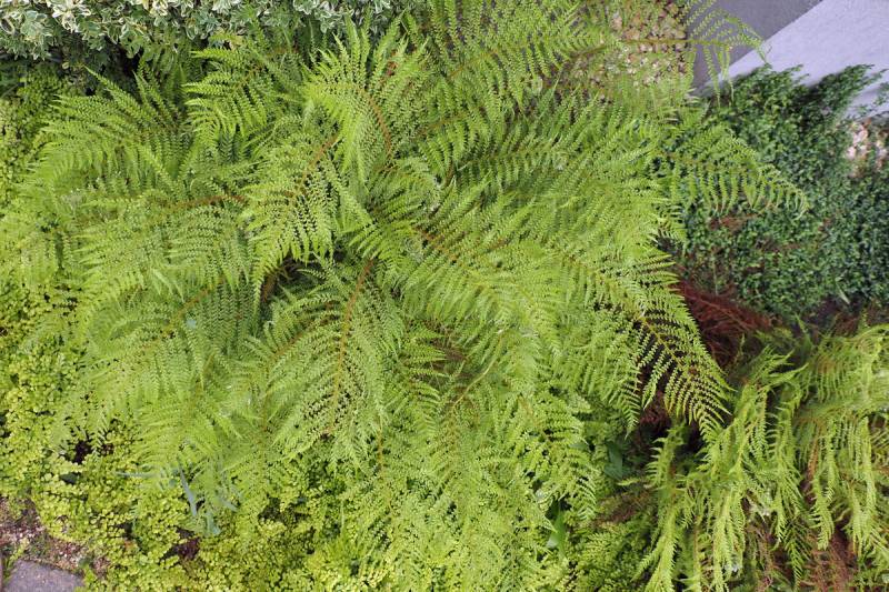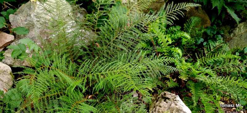 Polystichum setiferum , jego odmiana 'Lineare' tworzy wyjątkowo gęste kępy.