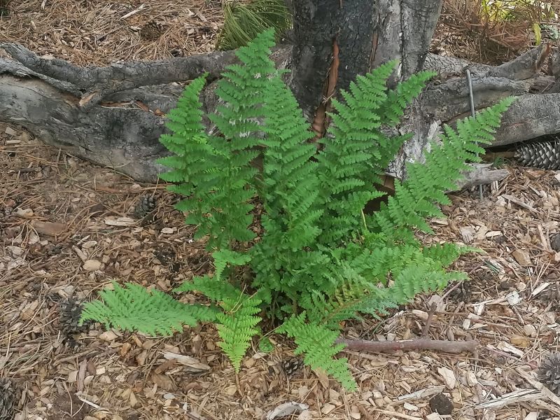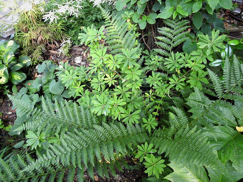 Najmłodszy egzemplarz Dryopteris filix-mas 'Barnesii' dość suchym półcieniu
