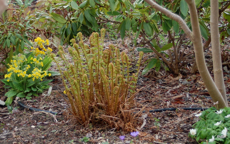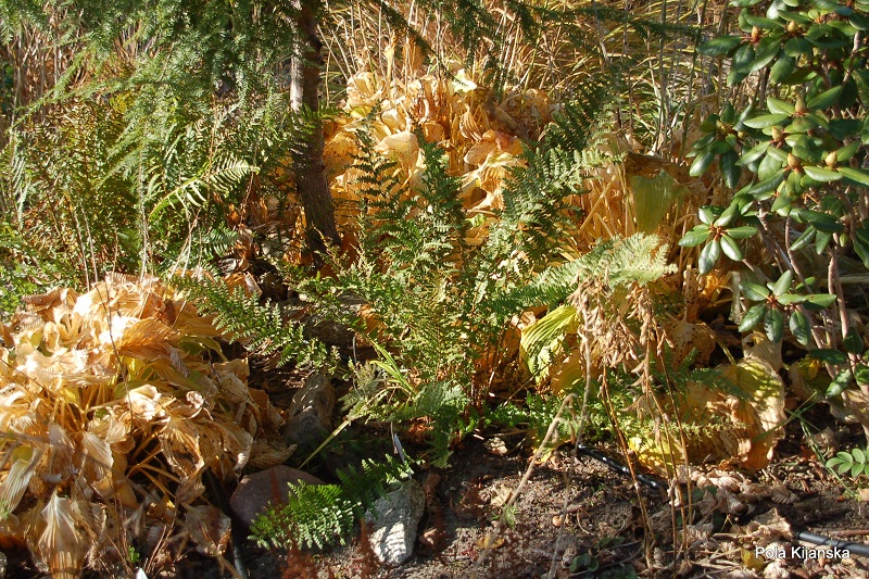 Narecznica 'Barnesii' ma za sobą dwie zimy w ogrodzie. Dziwię się, że kilkanaście nocy pod rząd z przymrozkami jej nie uszkodziło. Wiele moich paproci jest w większym lub mniejszym stopniu przemrożonych. Dopiero wczorajsza noc była bez przymrozku i oby tak zostało.