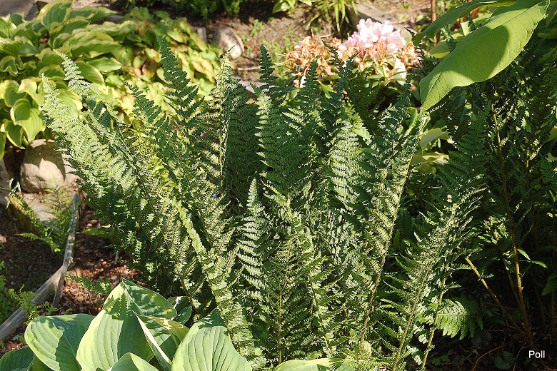 Dwa egzemplarze Dryopteris filix-mas 'Barnesii' na zasobnym, systematycznie nawadnianym stanowisku. Niestety, rosną w takim miejscu, ze ciężko im zrobić zdjęcie inaczej, niz w planie amerykańskim. :lol: