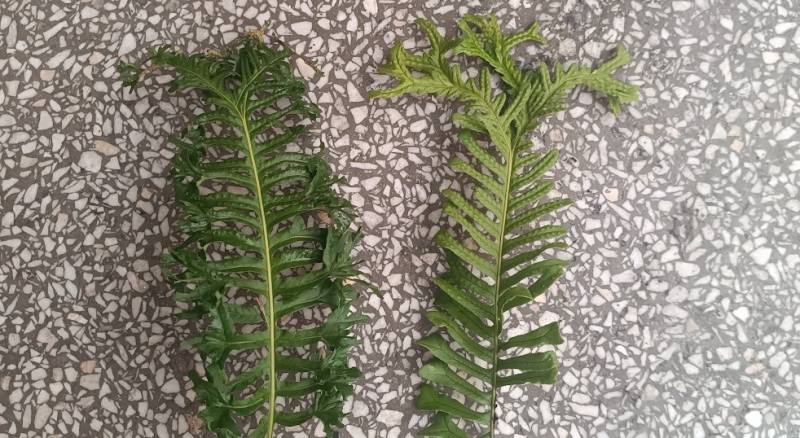 Na fotce po lewej 'Grandiceps Fox', z prawej liść 'Bifido - mutifidum'