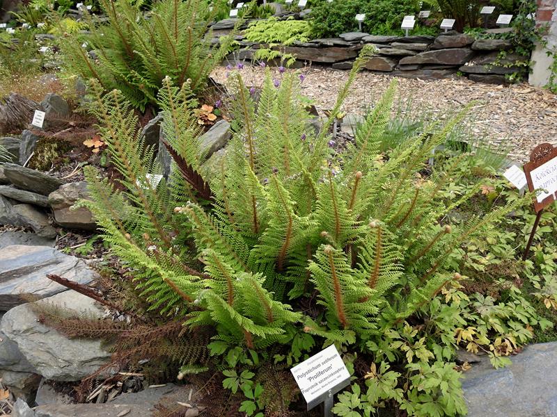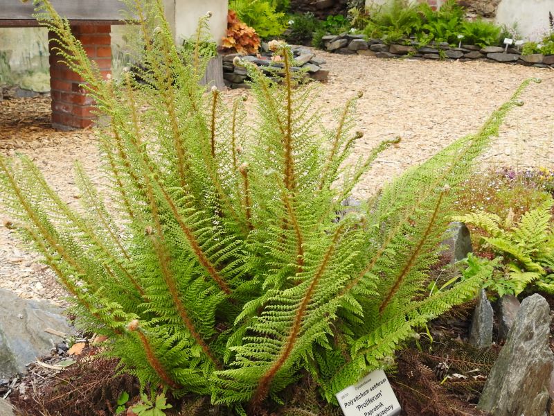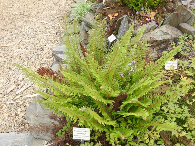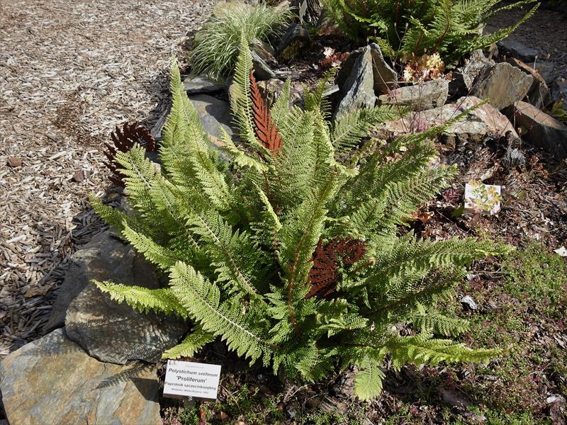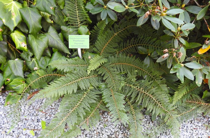 Back to the "Proliferum group" of Polystichum setiferum cultivars. It is indeed a special group with unusual proliferous buds,grown in the axils between the leaves' midrib and their pinnae. The latin adjective "proliferus/a/um" says "bearing kidlets", by that meaning the same as "viviparus/a/um", or other latin words.
