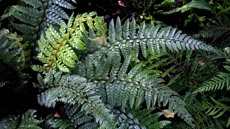 Polystichum neolobatum, to jeden z najbardziej lśniących paprotników, jakie rosną w moim ogrodzie. Mam nadzieję, ze jak dotychczas, będzie dobrze znosił nasze zimy i systematycznie przyrastał. Obecnie rośnie na półcienistym, systematycznie podlewanym stoku paprociowym.