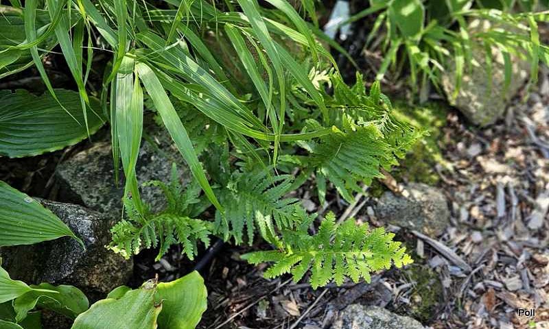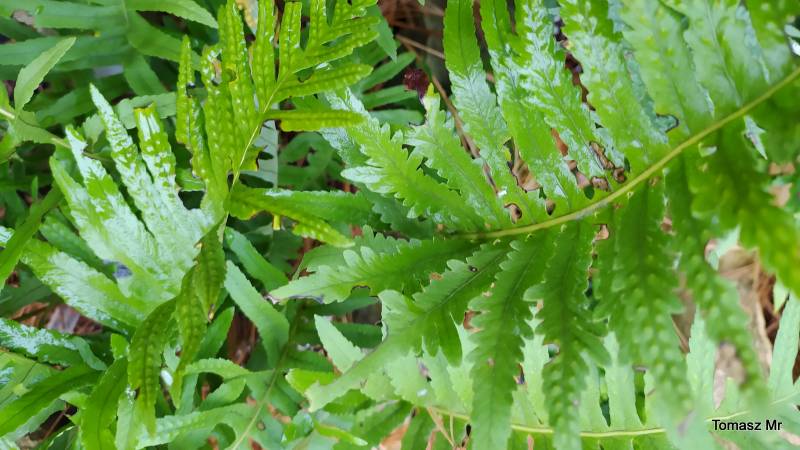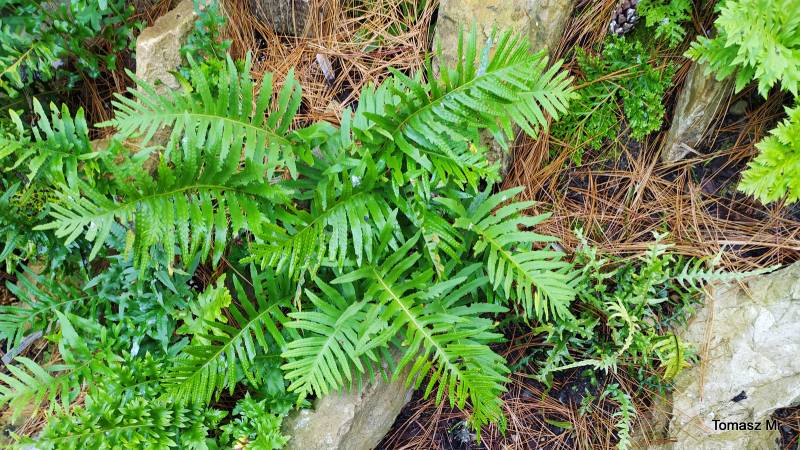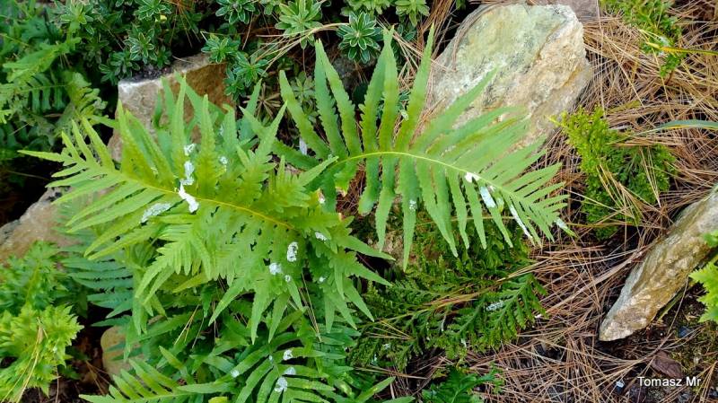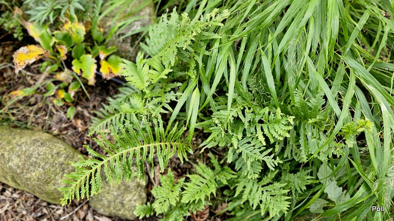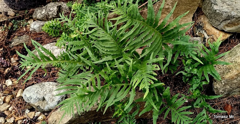 Polypodium cambricum 'Semilacerum Chudleigh' jest zarastane przez Hakonechloa macra Samurai, więc lada moment będę musiała znaleźć dla niej inną miejscówkę.