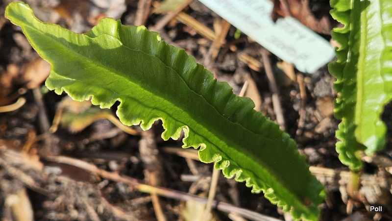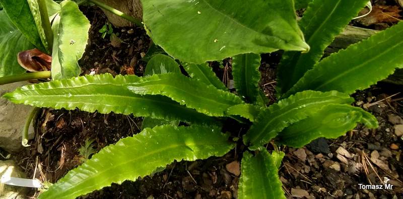 To jedna z bardziej charakterystycznych, ale nadal dość rzadko spotykanych w ogrodach odmian języcznika. Mocno pofalowane brzegi liścia są oddzielone wyraźnymi liniami od płaskiego środka.