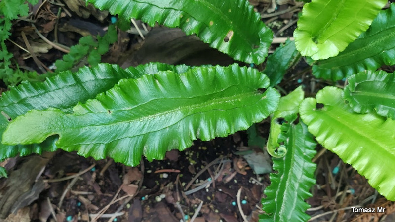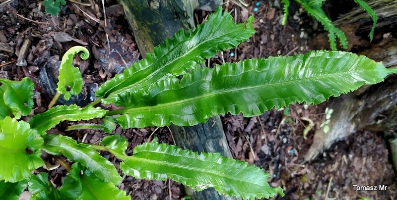 Asplenium scolopendrium 'Supralineatum' opuścił na ziemię wszystkie starsze liście, wiec obawiałam się, ze już po nim. Gdy się nieco ochłodziło, pojawiły się nowe pastorały, które rozwijają się bardzo szybko.