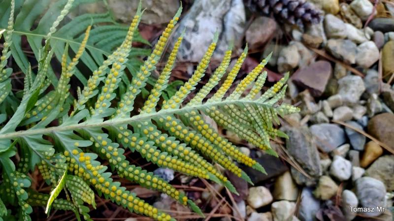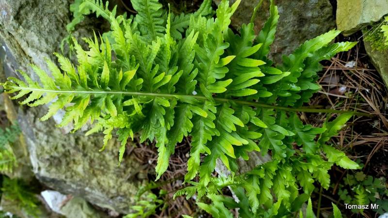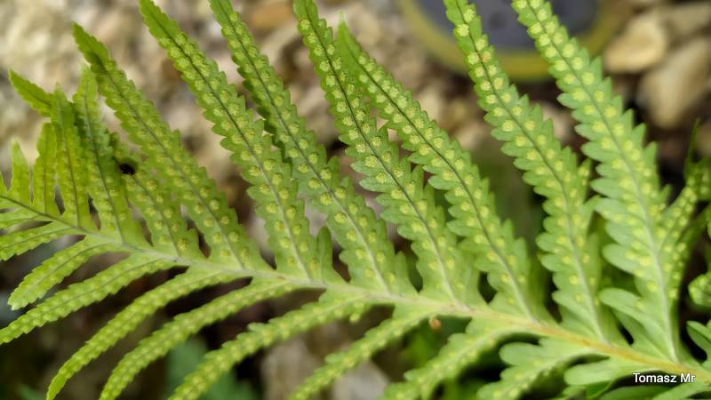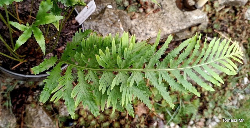 Polypodium cambricum 'Mrs Marston'. Bardzo nas to ucieszyło, bo to jedna z niewielu odmian odnalezionych po latach. Na dodatek należąca do najładniejszej grupy paprotek walijskich, 'Cambrian'.