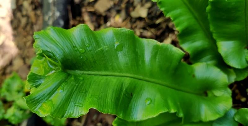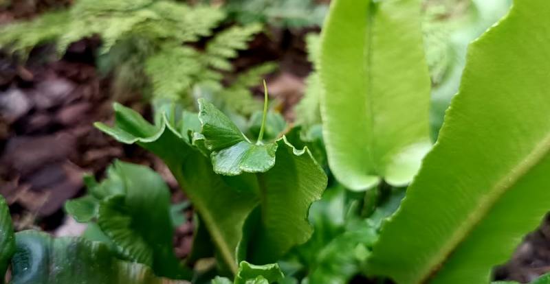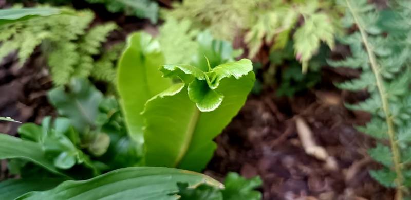 Asplenium scolopendrium 'Peraferens' z charakterystycznym żądłem. Myślę, ze trzeba ją traktować bardziej jako ciekawostkę niż ozdobę. U mnie nie nalezy do dynamicznie rosnących ale dość stabilnych.