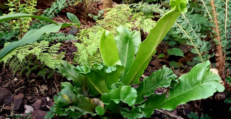 Assplenium scolopendrium 'Peraferens', na ocienionym stanowisku.